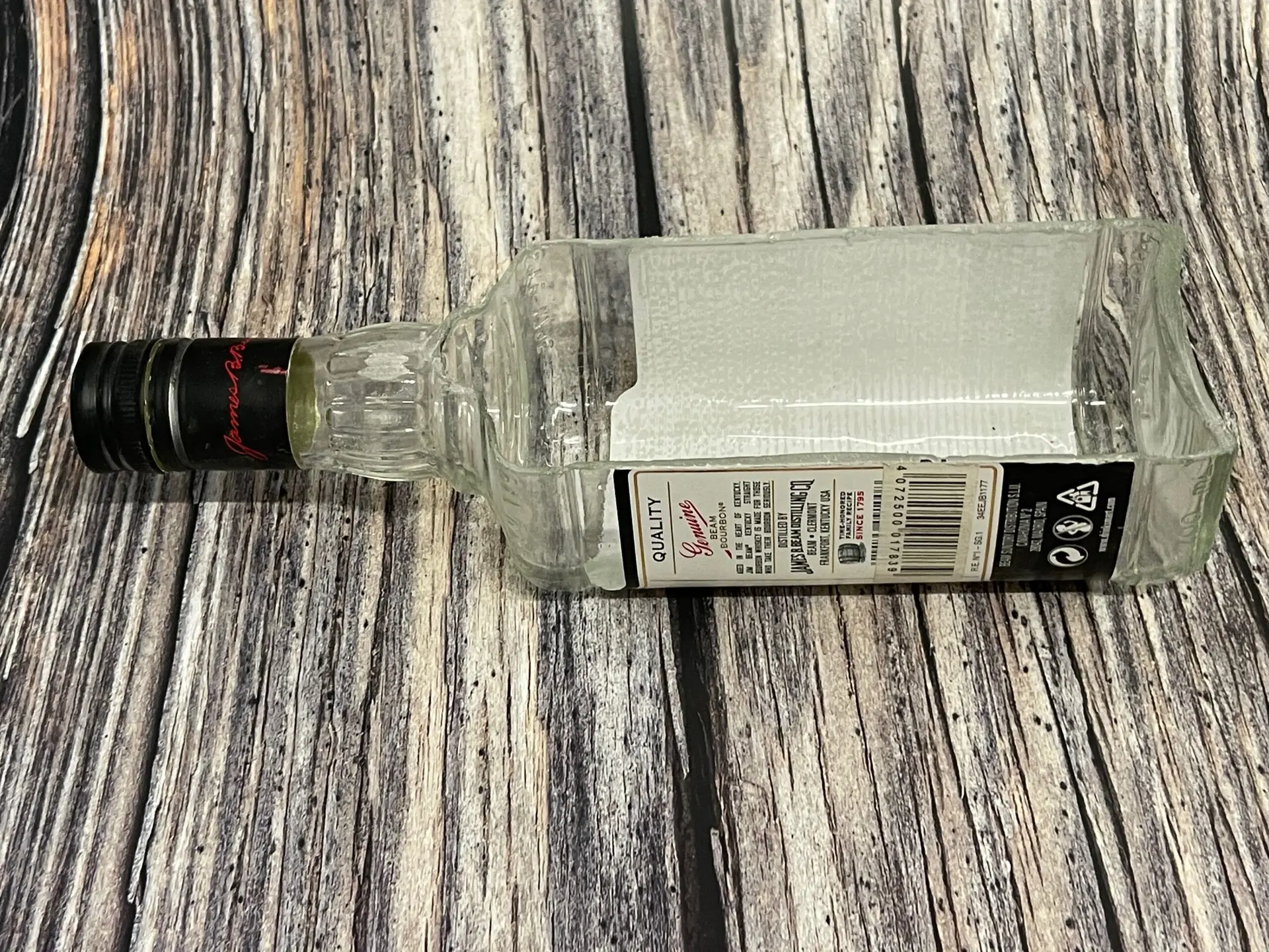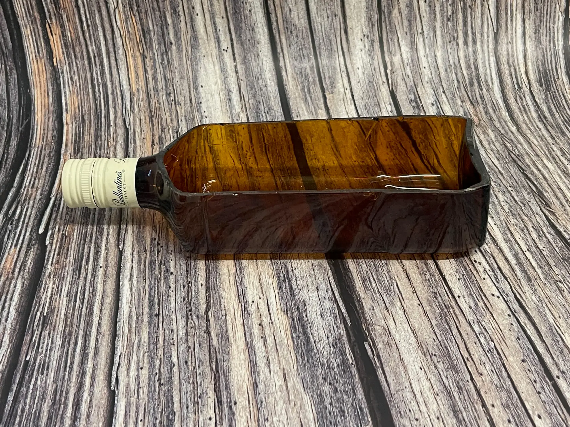 Die leere Flasche wurde durch aufschneiden zu einer dekorativen Snack-/ Blumen-Schale, zB- für Erdnüsse, Chips oder ach als Blumenschale