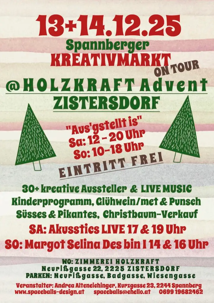 Auf diesen Märkten könnt ihr meinen Stand finden 1. Holzkraft Advent am 13+14. Dezember von 12-20 Uhr und 10.18 Uhr in Neurissgasse 22, 2225 Zistersdorf Holzkraft Poster A2 zum downloaden 1. Holzkraft Advent am 13+14. Dezembervon 12-20 Uhr und 10.18 Uhrin Neurissgasse 22, 2225 Zistersdorf
